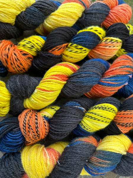 Beacon is a deep, brooding fall color way available on Rustique DK and Zebra and Rustique and Zebra Sock